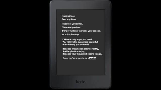 Message: Kindle is that guardian angel that allows you to live a thousand times.